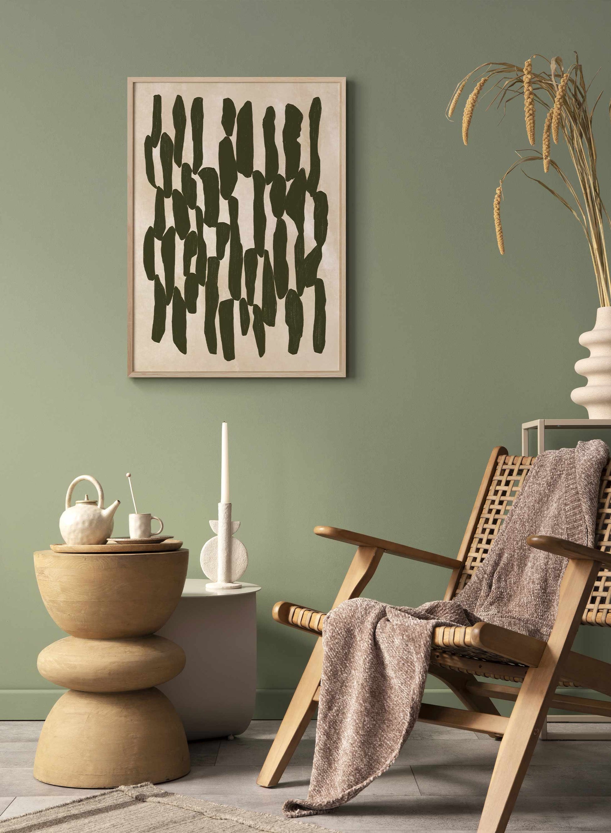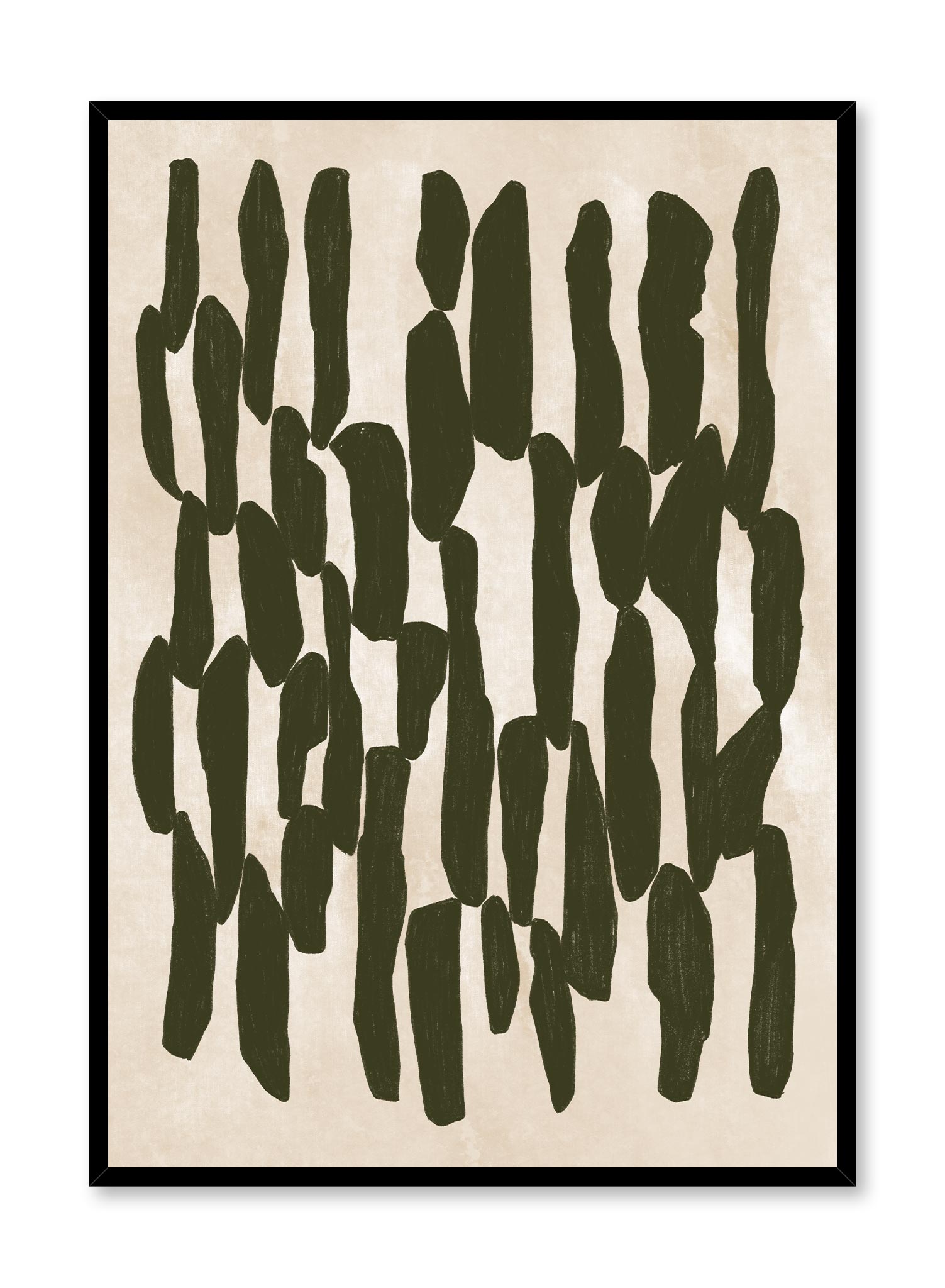 This is one ‘Glitch’ we don’t mind at all! In this cool abstract design, a checkerboard seems to have been deconstructed and melted, leaving behind traces of a dark green composition over a light textured beige background. If you appreciate contemporary and modern art prints, be sure to include this statement piece to your art collection!