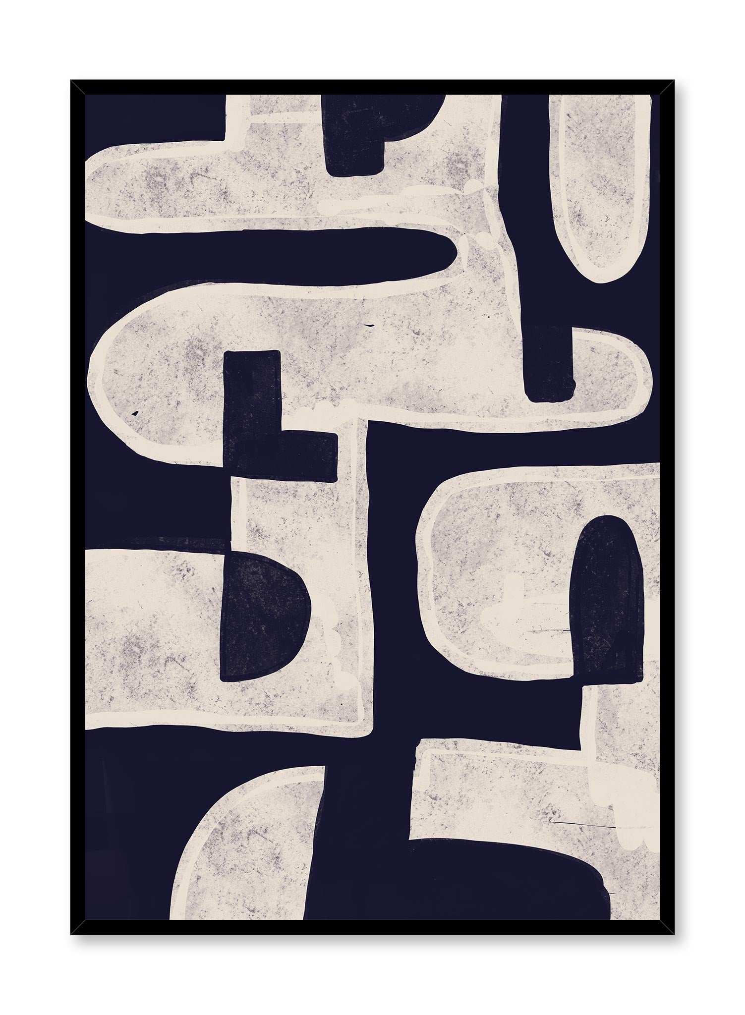 Be warned: it’s easy to lose track of time while looking at the ‘Guessing Game’ poster! This puzzle-like pattern of industrial textured beige shapes over a rich blue background is such a statement piece. Add this neutral-colored abstract poster to your artwork collection and just wait for the compliments to pour in!